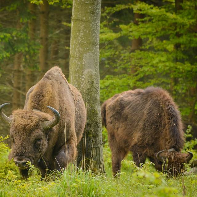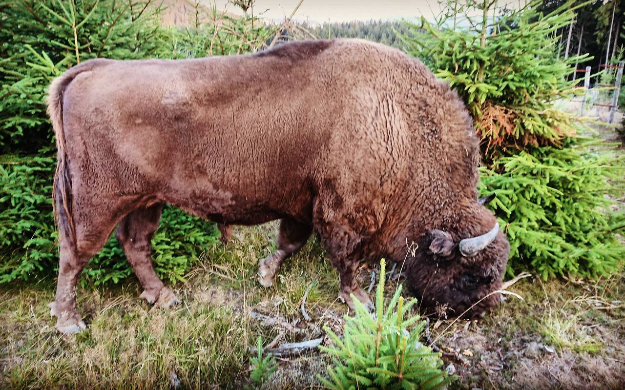 Die 40 Tiere der ausgewilderten Wisentherde in Wittgenstein leben seit einigen Wochen innerhalb eines Gatters.