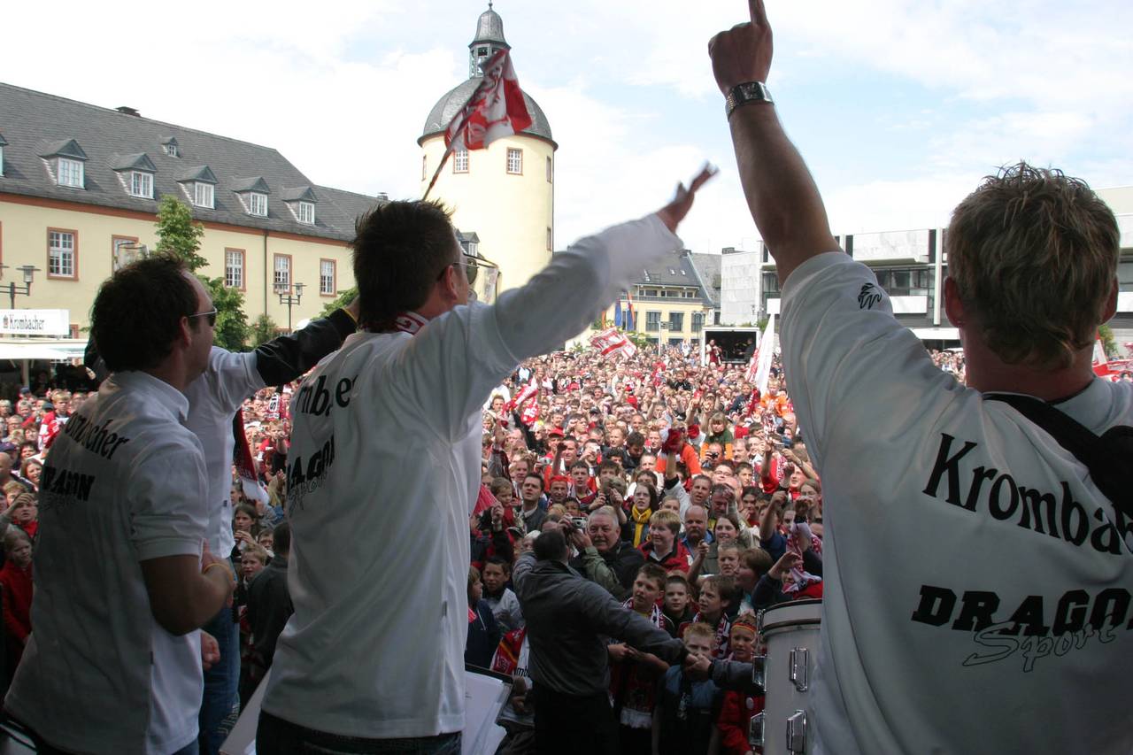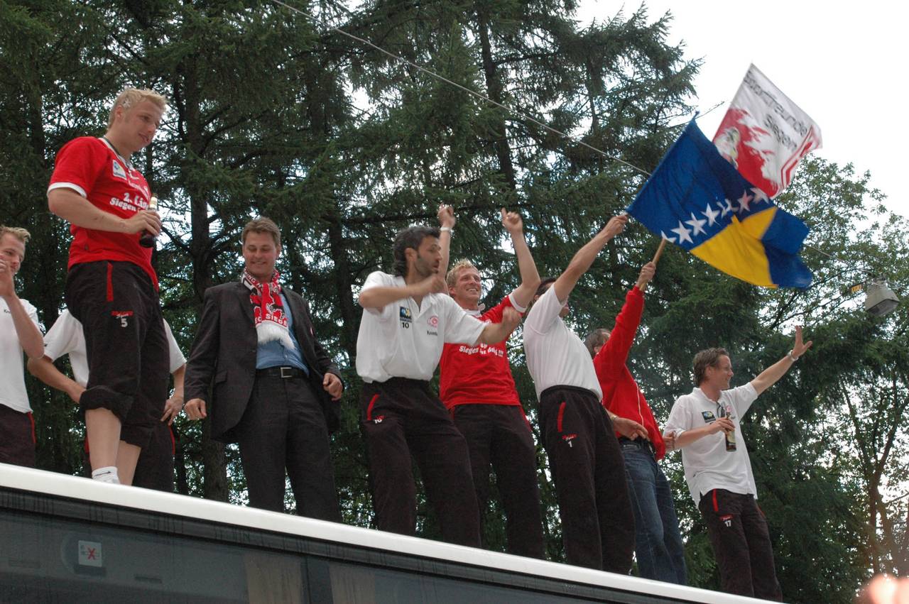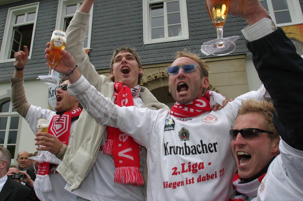 Siegen stand nach dem Aufstieg in die 2. Liga Kopf. Am Abend des 04. Juni wurde spontan im Leimbachstadion und am 05. Juni auf dem Schlossplatz gefeiert.