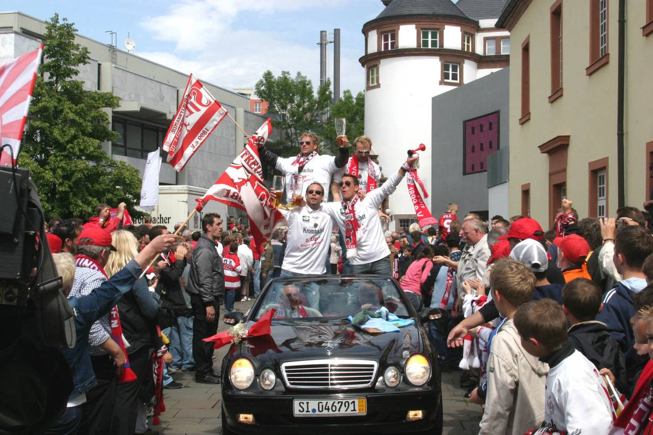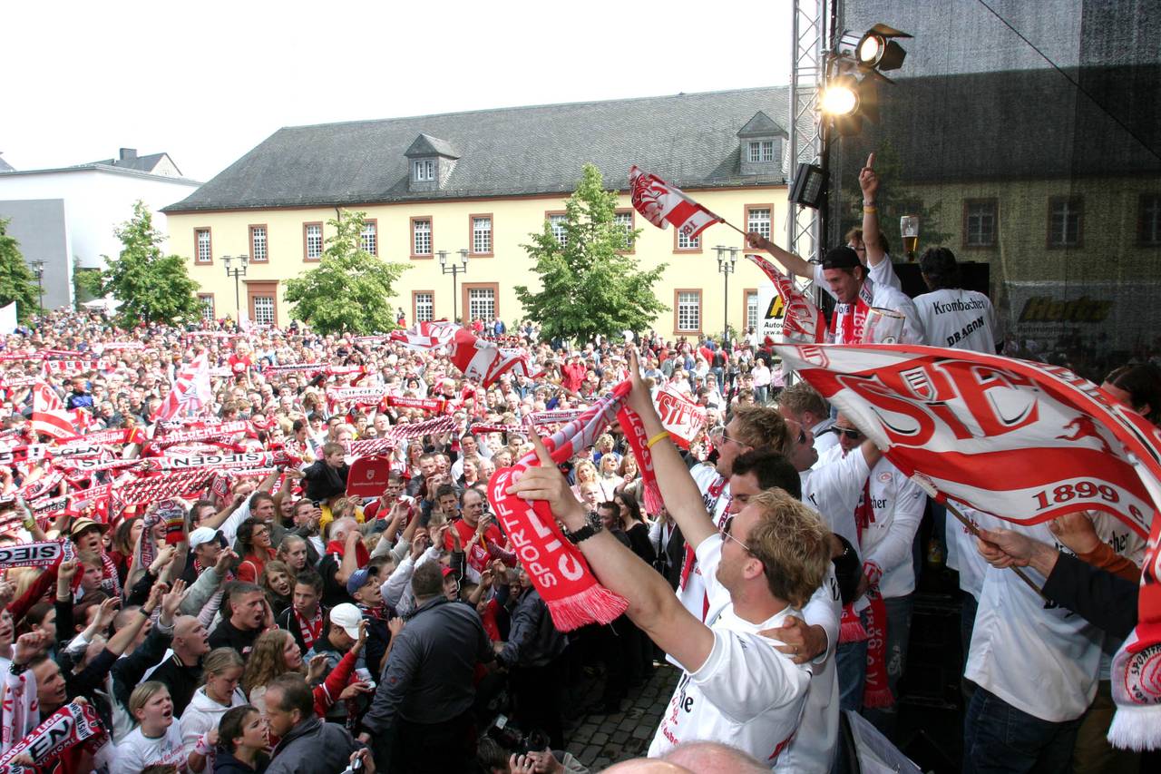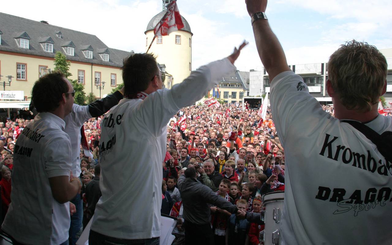 Siegen stand nach dem Aufstieg in die 2. Liga Kopf. Am Abend des 04. Juni wurde spontan im Leimbachstadion und am 05. Juni auf dem Schlossplatz gefeiert.