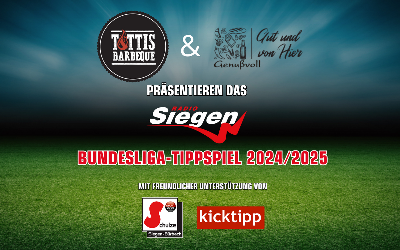 Für die ersten fünf Plätze gibt es nach Saisonende hochwertige Sachpreise von Sport Schulze. Die ersten zehn Plätze laden wir mit einer Begleitperson wieder zu einem tollen Abschlussgrillen mit Tottis BBQ ein und für den Spieltags-Sieger gibt es einen Gutschein vom "Genußvoll" in Höhe von fünf Euro. Gewinne können nur im Einzugsgebiet von Radio Siegen (PLZ-Bereich 57....) vergeben werden!