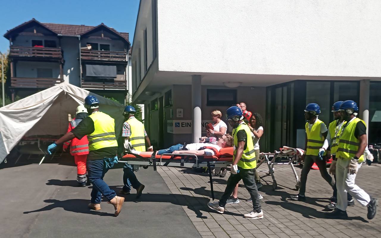 Am Samstag fand im Rahmen der Ausbildung beim DRK Kreisverband in Weidenau eine großangelegte Katastrophenschutzübung statt. Dabei mussten die Auszubildenden gemeinsam mit ehrenamtlichen Helfern des DRK zum Beispiel Verpflegungsstände aufbauen oder üben Verletzte zu transportieren. Entwickelt wurde die Maßnahme in Zusammenarbeit mit dem kommunalen Integrationszentrum Siegen-Wittgenstein. Mit ihrer Hilfe soll geflüchteten Menschen eine Grundausbildung im Sanitätsbereich ermöglicht werden. Ausbildungsleiter Boris Wißmann vom DRK zog während der Übung am Samstag im Gespräch mit Radio Siegen eine erste positive Bilanz. Er sei stolz auf die Truppe und ihre Leistung, so Wißmann.