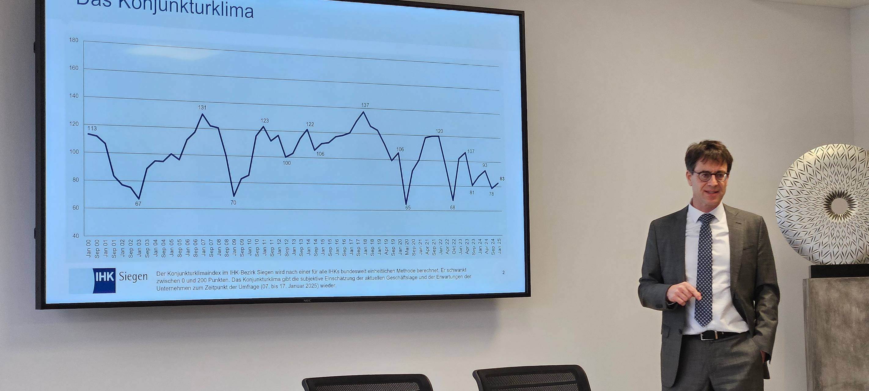 Die heimische Wirtschaft steckt in einer Krise und die Stimmung ist düster. Das hat eine Umfrage der Industrie und Handelskammer Siegen in den Kreisen Siegen-Wittgenstein und Olpe ergeben. Mehr als 500 Firmen haben sich beteiligt. Demnach leiden sie vor allem unter zu viel Bürokratie. Dazu kommen eine schlechte Verkehrsinfrastruktur, die langsame Digitalisierung und der massive Fachkräftemangel. Auch die wirtschaftspolitische Lage verunsichert die Firmen. Sie hoffen, dass sich nach der Bundestagswahl etwas ändert. Radio Siegen hat mit IHK-Hauptgeschäftsführer Thilo Pahl gesprochen: