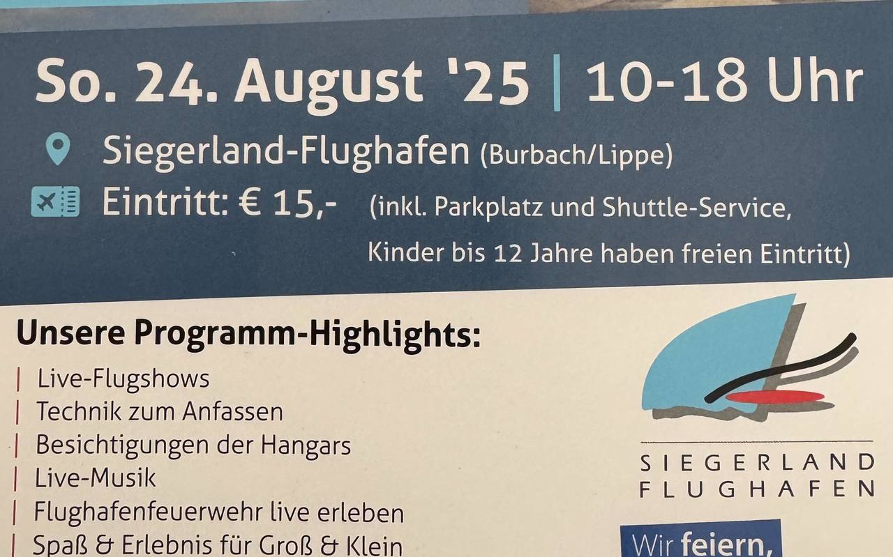 Alle Infos findet ihr auch hier: Flughafenfest Siegerlandflughafen 2025 -