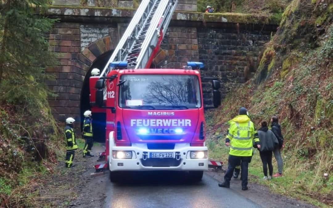 Zu einer Personenrettung beim Hohenhainer Tunnel musste die Freiwillige Feuerwehr Freudenberg am Sonntagnachmittag ausrücken.