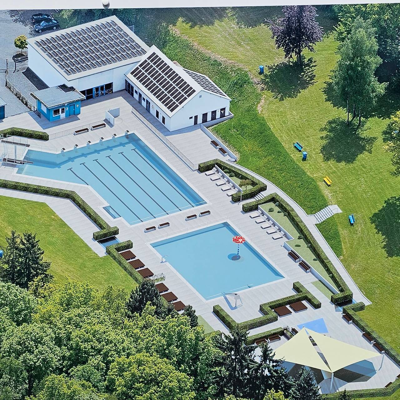 Auch das Kinderbecken wird auf den neuesten Stand gebracht. Die Sprunganlage wird erweitert: neben einem 1-Meter-Brett gibt es künftig auch ein 3-Meter-Brett. Die Stadt lässt einen attraktiven Wasserspielplatz anlegen. Die Duschen werden künftig barrierefrei und auch für Rollstuhlfahrer nutzbar sein. Auch die Warmwasseraufbereitung wird modernisiert. Bürgermeisterin Nicole Reschke freut sich, dass die Stadt Freudenberg für die Sanierung ihres Freibads 2,2 Millionen Euro Fördergelder vom Bund bekommt. Sie sind aus dem Bundesprogramm zur Sanierung kommunaler Einrichtungen in den Bereichen Sport, Jugend und Kultur bewilligt worden.