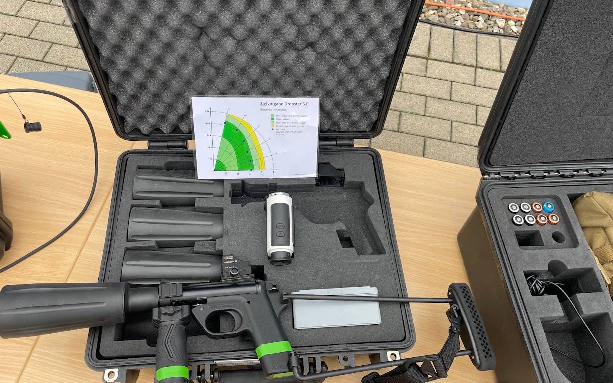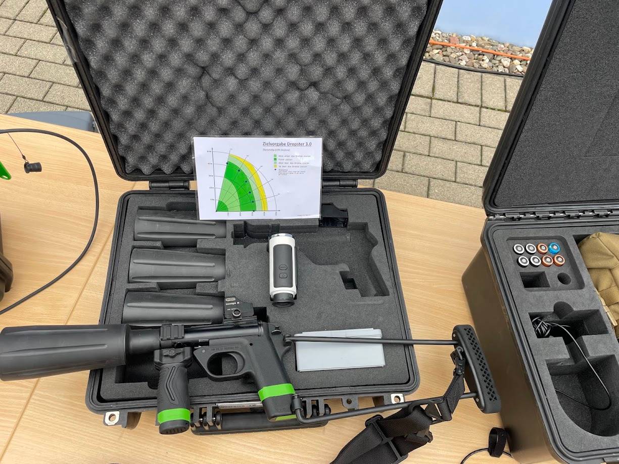 Mit Hilfe spezieller Abschussgeräte lassen sich illegale Drohnen auch aus nächster Nähe mit einem Fangnetz aufhalten.