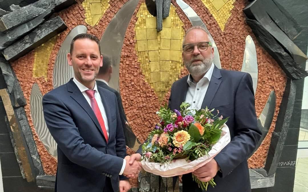 Der Neunkirchener Rat hat Jost Senftleben zum Allgemeinen Vertreter von Bürgermeister Marco Schwunk und neuen Kämmerer bestellt. Seit 25 Jahren ist der 55 Jahre alte Herdorfer in der Gemeindeverwaltung tätig, viele Jahre davon in leitender Position. Zuletzt hatte er die Ämter des Fachbereichsleiters Zentrale Dienste / Finanzen, des Kämmereileiters sowie des kaufmännischen Betriebsleiters des Gemeindewerks inne. Bürgermeister Marco Schwunk gratulierte dem neuen Allgemeinen Vertreter und freut sich auf eine gute, erfolgreiche und für die Zukunft der Gemeinde Neunkirchen gewinnbringende Zusammenarbeit.
