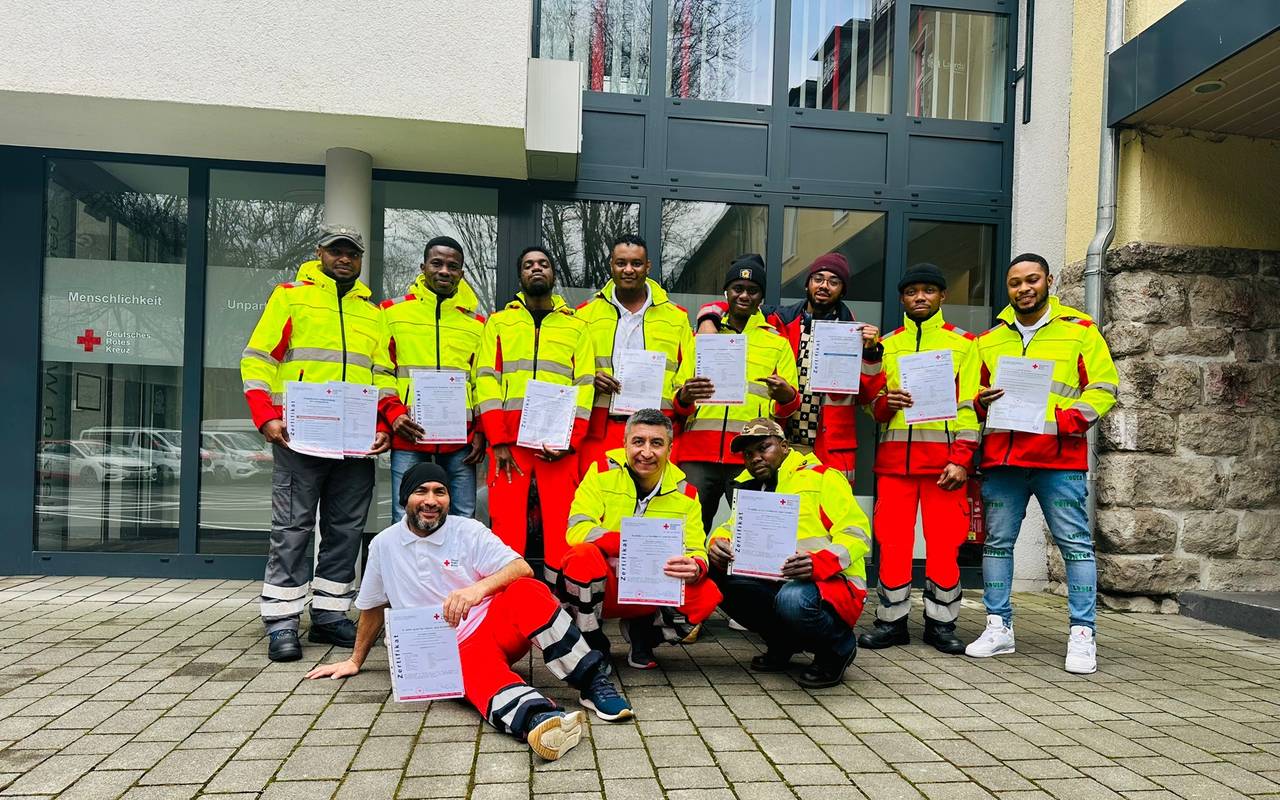 Im Rahmen eines Pilotprojekts hat das Deutsche Rote Kreuz Siegen-Wittgenstein elf Menschen mit unsicherem Aufenthaltsstatus zu Einsatzkräften für den Katastrophenschutz ausgebildet. Die Teilnehmer aus Nigeria, der Elfenbeinküste, Syrien, Tadschikistan und Guinea sind in Deutschland nur geduldet. Seit Mai 2022 haben sie an zwei Tagen in der Woche beim DRK eine Ausbildung in Katastrophenschutz, Erste Hilfe, Betreuung und Sprache gemacht. Im vergangenen Monat haben sie die Abschlussprüfungen gemeistert und können ab sofort aktiv in der Rotkreuzarbeit mithelfen. Im März soll ein neuer Ausbildungskurs “Sanitäter Plus” starten.