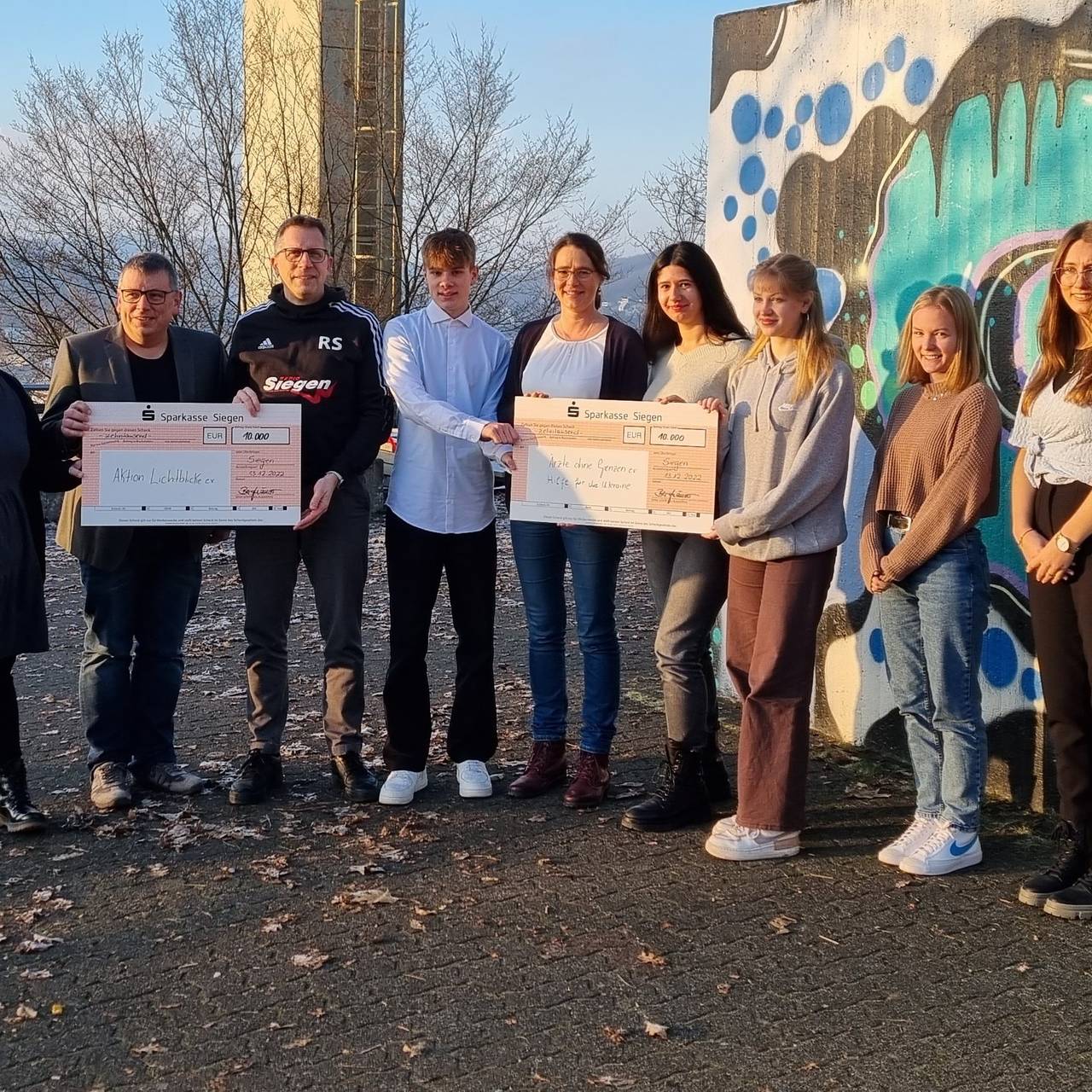Beim Sponsorenlauf des Siegener Gymnasiums auf der Morgenröthe waren Ende Mai 38.000 Euro zusammengekommen, 20.000 Euro davon hat die Schule jetzt gespendet. Jeweils zur Hälfte an „Ärzte ohne Grenzen“ und unsere „Aktion Lichtblicke“, 18.000 Euro werden am Gymnasium selbst investiert. Das Geld kam überwiegend von Familien, Freunden und Bekannten der Schülerinnen und Schüler.