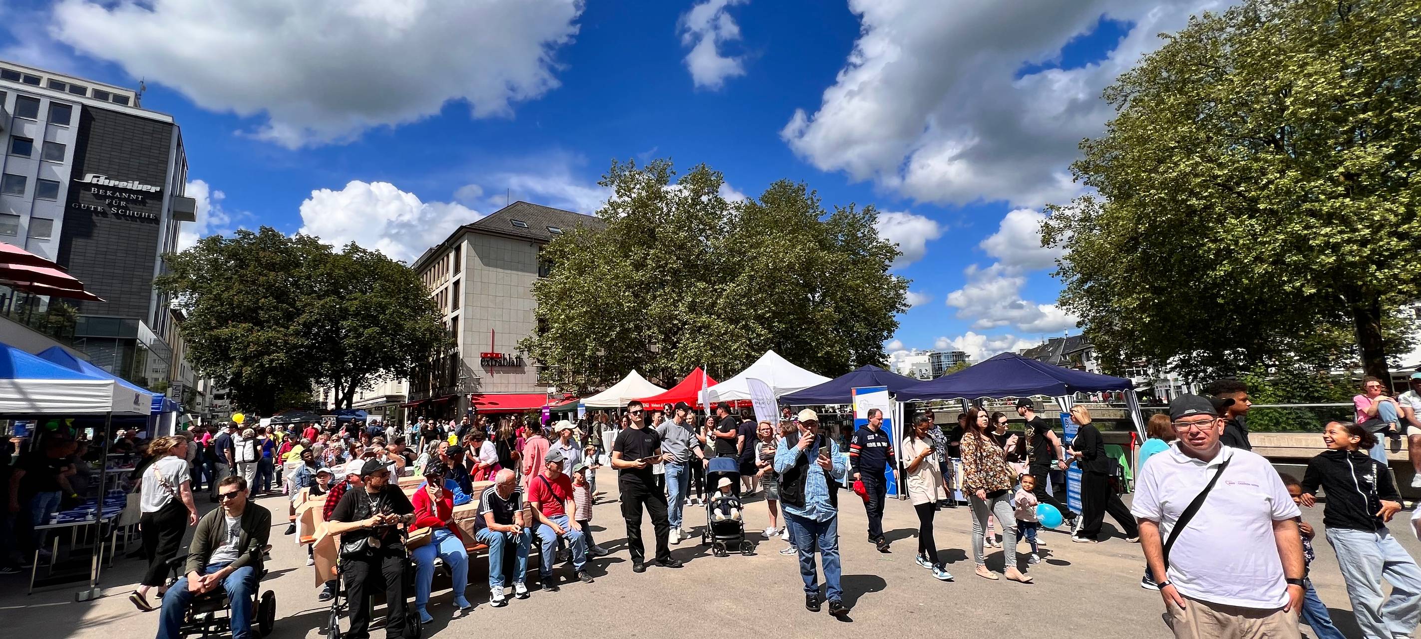 Über 30 Stände, Sonnenschein, dazu Live-Musik. Bunt und fröhlich war’s am Wochenende beim “Tag der Begegnung” in Siegen. Das inklusive Familienfest von Kreis, Stadt und der Arbeitsgemeinschaft Begegnung in der Innenstadt fand bereits zum 26. Mal statt und war auch in diesem Jahr sehr gut besucht. Selbsthilfegruppen und soziale Organisationen stellten sich und ihre Arbeit vor. Landrat Andreas Müller und Siegens Bürgermeister Steffen Mues sprachen sich bei der Eröffnung u.a. für Vielfalt und Miteinander aus. Radio Siegen hat mit einigen Besuchern der Veranstaltung gesprochen: