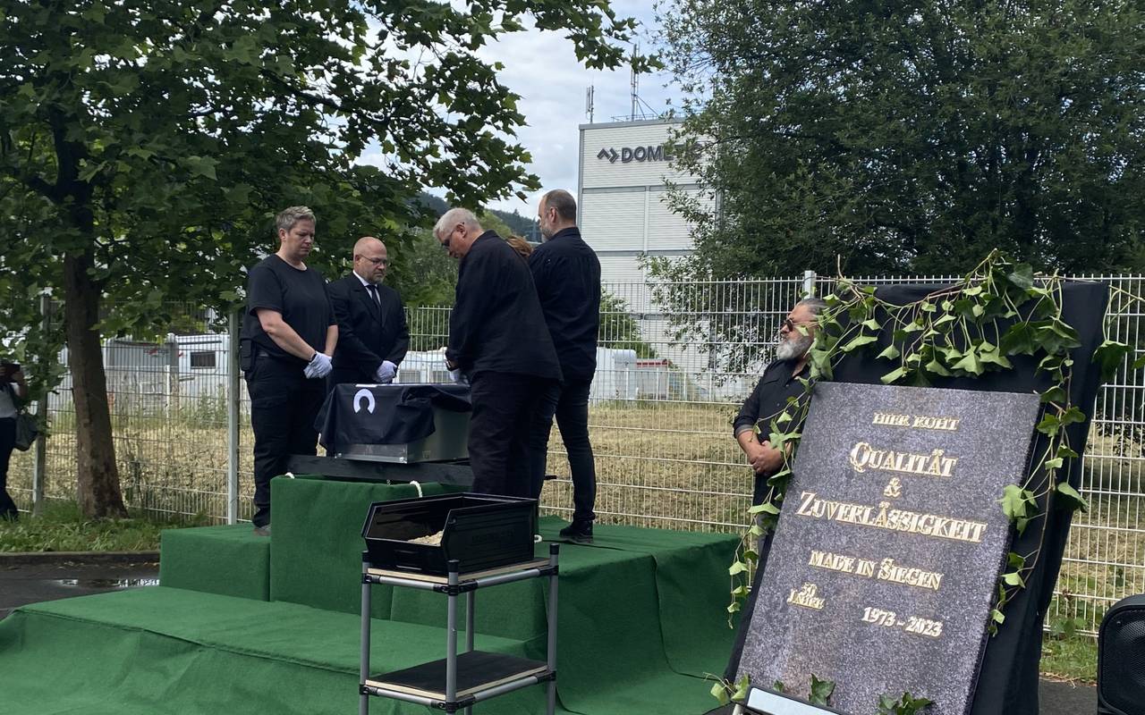 Trauerstimmung Freitagmittag im Gewerbegiebiet in Kaan-Marienborn. Das Unternehmen “Dometic” hat die Kühlschrank-Produktion in Siegen beendet. Nach 70 Jahren und mehr als 11 Millionen produzierten Absorber-Kühlschränken. Sie sind auf der ganzen Welt zu finden – in Hotelzimmern, in Caravans und Wohnmobilien. Siegen war der modernste Produktionsstandort - künftig kommen die Dometic-Kühlschränke aus Ungarn. Der letzte Siegener Kühlschrank ist von Beschäftigten in einem Trauerzug zu Grabe getragen worden: auf dem Mitarbeiterparkplatz. Entsprechend gedrückt war die Stimmung. 100-Dometic-Beschäftigte aus der Fertigung wechseln nun in eine Transfer-Gesellschaft. Die Verwaltung mit etwa 60 Mitarbeitern ist weiterhin in Siegen. Siegen bleibt auch Sitz der Dometic-Holding.